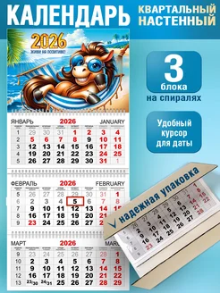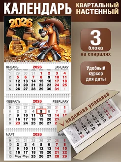 Календарь 2026 настенный трехблочный символ года лошадь