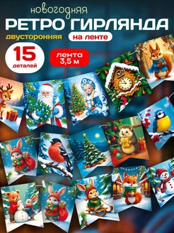 Новогодние украшения Гирлянда флажки ретро 15шт