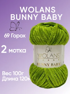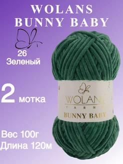 Плюшевая пряжа Bunny baby цвет 26 зеленый 2 мотка