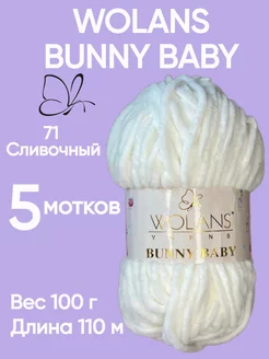 Плюшевая пряжа Bunny baby цвет 71 сливочный 5 мотков