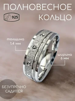 Широкое обручальное кольцо серебро 925