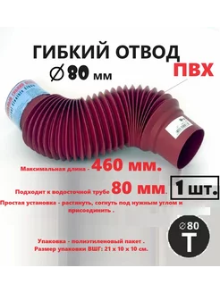 Гибкий отвод диаметром 80 мм, длина до 46 см, красный