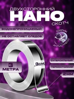 Двухсторонняя клейкая лента нано скотч 3 метра