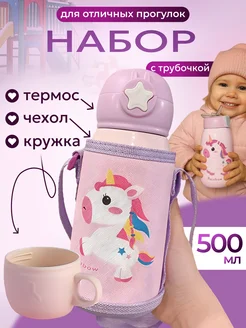 Термос детский с трубочкой для чая поильник
