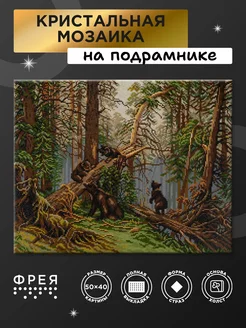 Алмазная мозаика на подрамнике 50х40 Утро в сосновом лесу