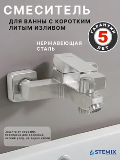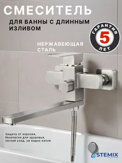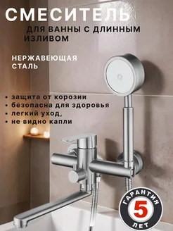 Смеситель для ванны с душем и длинным изливом из нержавейки