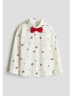 Рубашка с новогодним принтом и бабочкой