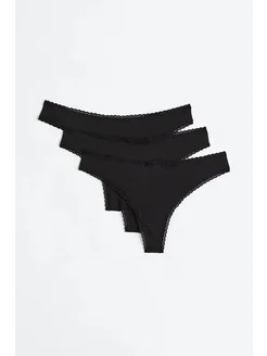 Хлопковые трусы-бразильяна с кружевной отделкой 3 шт