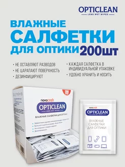 Влажные салфетки для очков OPTICLEAN-Lens wet wipes, 200шт