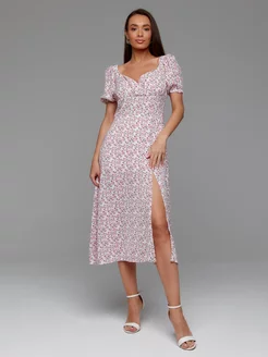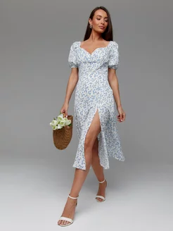 Платье летнее крестьянка повседневное миди с разрезом