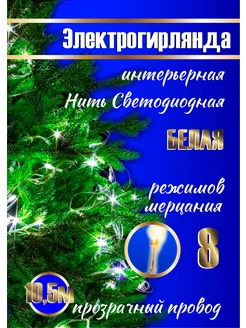 Гирлянда на елку белая, 10.5 м