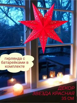 Рождественская звезда бумажная светящаяся с гирляндой 35 см