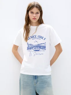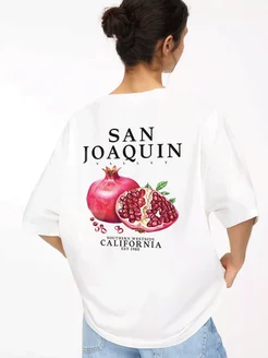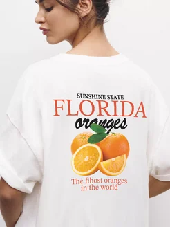 Футболка оверсайз летняя с лимонами со спущенным плечом