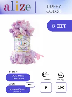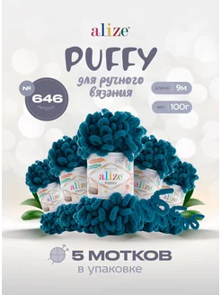 5 мотков по 100 гр Пряжа Puffy №646 Петроль
