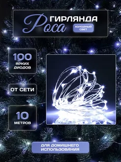 Гирлянда роса на проволоке от сети светодиодная 10м