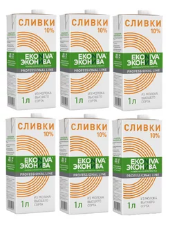 Сливки ультрапастеризованные 10%, 1 л. 6 шт