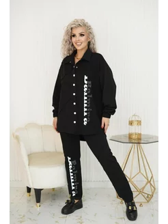 Брючный костюм нарядный со стразами эко-кожа с трикотажем