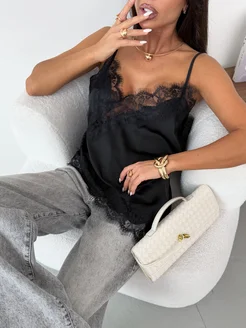 Топ шелковый с кружевом в бельевом стиле