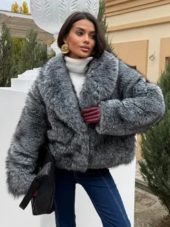 Шуба искусственная короткая зимняя экошуба чернобурка лиса