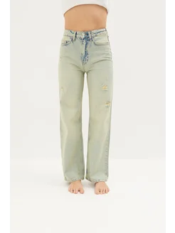 Джинсы клеш широкие с эффектом варки