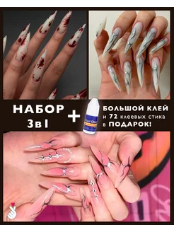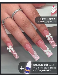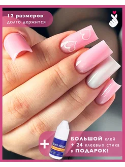 Накладные ногти с клеем и стиками дизайном короткие френч