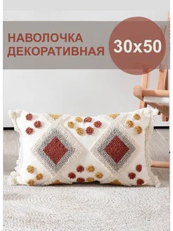 Наволочка декоративная с вышивкой и бахромой 30х50 бохо