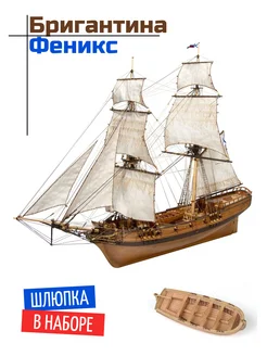 Сборная модель корабля из дерева Феникс с шлюпкой