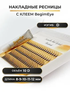 Накладные ресницы 8-12 мм, изгибы D, 10D с клеем BegimEye