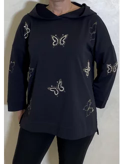 Лонгслив оверсайз с принтом и капюшоном кофта нарядная