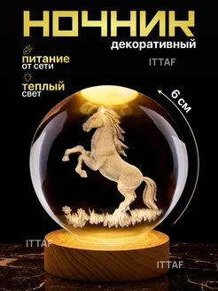 Ночник светильник хрустальный шар Конь