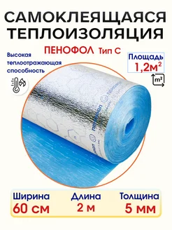 Самоклеящийся фольгированный утеплитель 5мм 1,2м2 2м