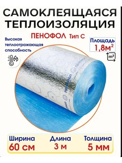 Самоклеящийся фольгированный утеплитель 5мм 1,8м2 3м