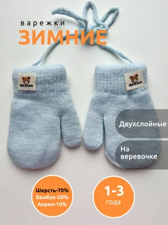 Варежки детские зимние 1-3 года на веревочке
