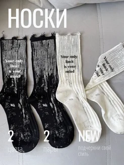 Носки с надписью рваные удлиненные две пары