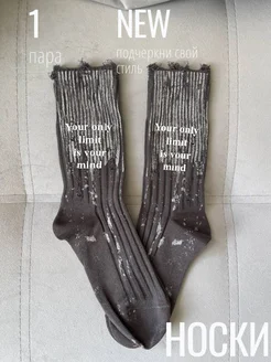 Носки с надписью рваные удлиненные