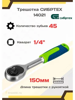 Трещотка 1 4 72-зубцовая с прямой рифленой ручкой L-150мм