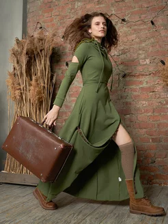 Дизайнерское платье хаки бохо