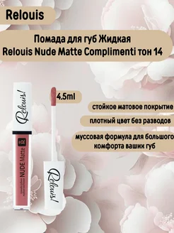 Помада губная Жидкая матовая NUDE MATTE тон 14