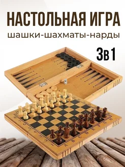 Деревянные Шашки+Шахматы+Нарды 3в1