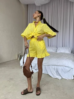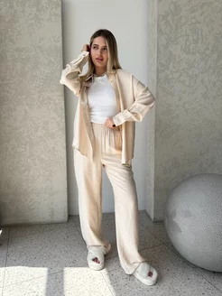 Костюм льняной с брюками и рубашкой летний оверсайз