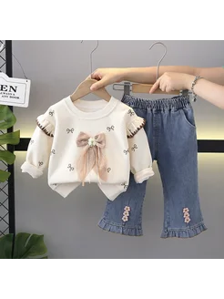 Костюм для девочки двойка комплект с джинсовыми брюками
