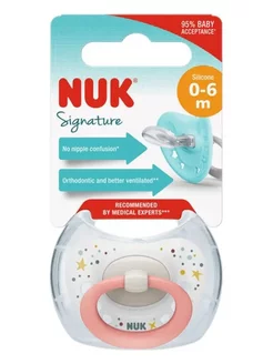Соска пустышка ортодонтическая 0-6 м силиконовая Signature