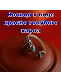 Кольцо Карп Кои рыбка синяя красная в винтажном стиле