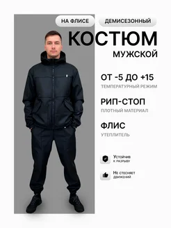 Костюм теплый рабочий демисезонный на флисе чёрный