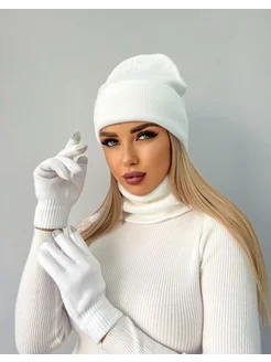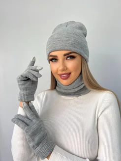 Шапка бини со снудом и сенсорные перчатки комплект