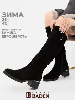 Сапоги женские зимние замшевые натуральные ботфорты еврозима