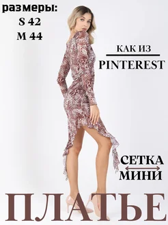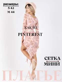 платье в сетку с воланами вечернее новогоднее короткое
