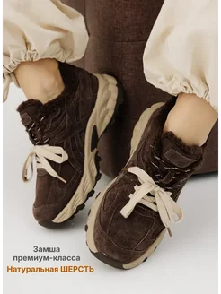 Кроссовки короткие зимние замшевые на платформе