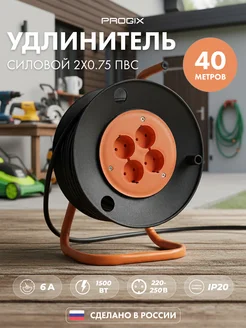 Силовой удлинитель на катушке шнур ПВС 40м 2х0.75