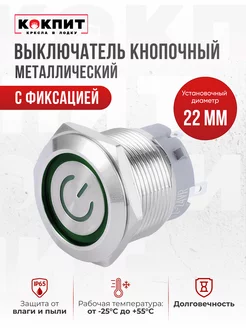 Кнопка металлическая (12-24 В 22 мм) Зелёный